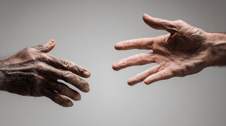 Two hands reach toward each other, embodying a moment of tension and potential reconciliation