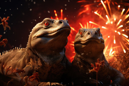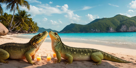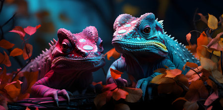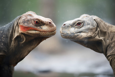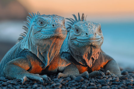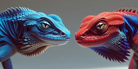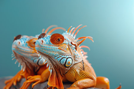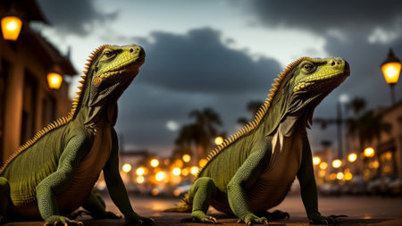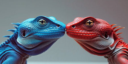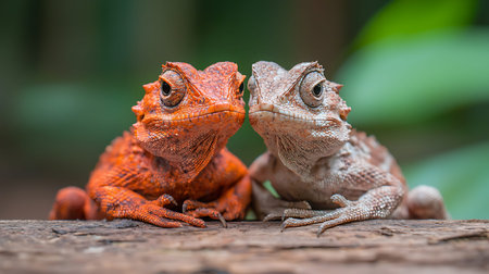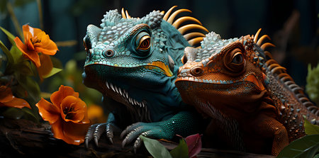 Close Up of Two Humorous Iguana Heads Mimicking Human Interaction, Perfect for Comical Themes AI Generative