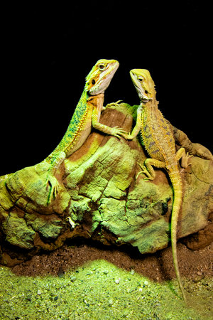 Reptile Photography of Bearded Dragons on Rock. Lizards on a black background