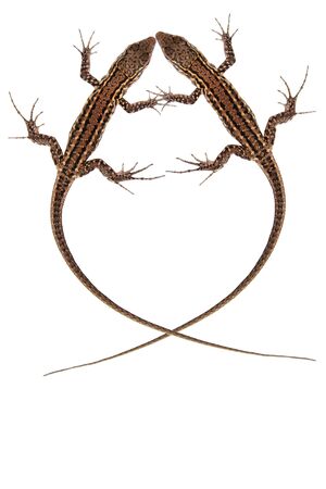 Two Iberian lizards (Podarcis hispanicus) fighting between the sun and the shade.