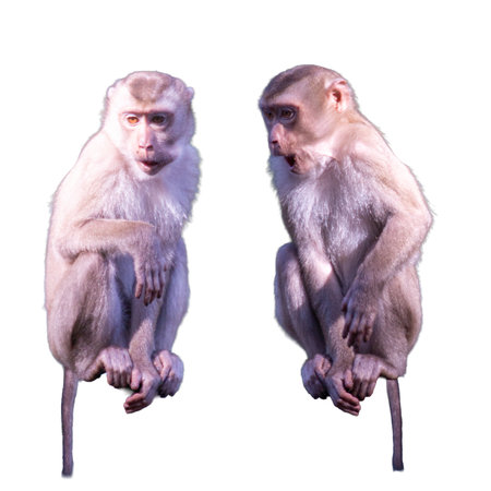 two Monkey isolated on white background. Clipping path included for easy extraction.