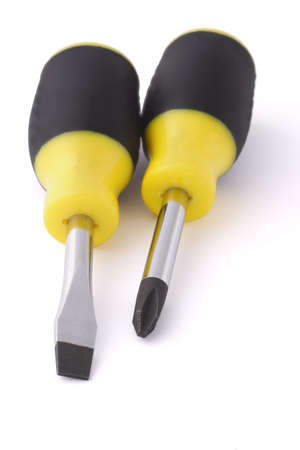 This image showcases a collection of screwdrivers with bright yellow handles, arranged neatly on a white background. Perfect for tool enthusiasts, DIY projects, and more.