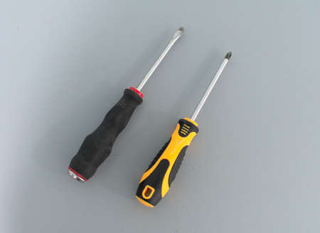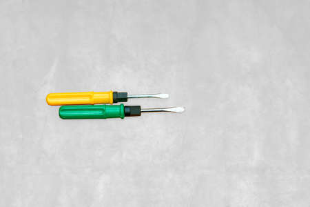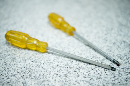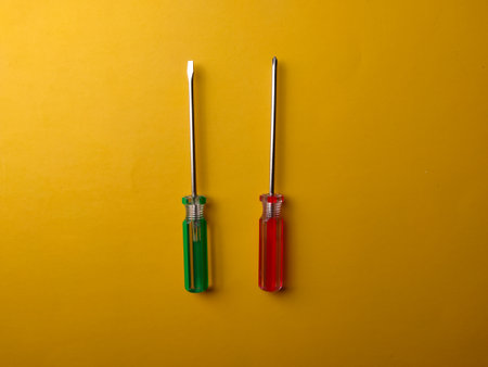 screwdrivers and construction tools on yellow background equipment for repair industry