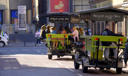 Belfast Party Bike in the city center - BELFAST, UK - APRIL 25, 2022
