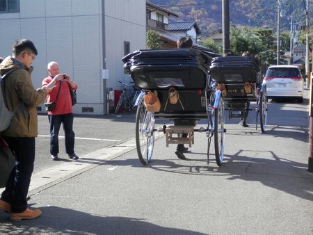 Takayama Japan - September 23, 2014: Jinrikisha, pulled rickshaw in Takayama historic area