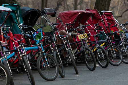 NEW YORK - MARCH 12 2016: Pedicabs are very popular among the tourists visiting the New York's Central Park.