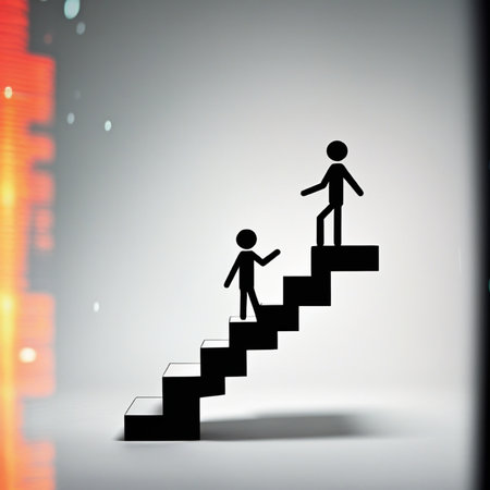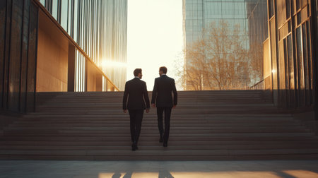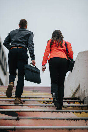 Climbing the City Stairs: Symbolizing Career Growth, Skill Improvement, and Salary Increase. Concept Career Growth, Skill Improvement, Salary Increase, Climbing City Stairs