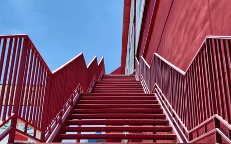 Minimalist vivid colour outdoor stairs. Abstract steps background.
