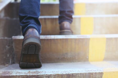 The close up picture of the person working as business person and walking to work into the stairs, the businessman require skill like management, negotiation, marketing and the communication. AIG43.