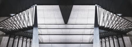 Abstractly hallway of modern building. The building where the photo forum took place in Barcelona 2017, the play of light and shadows in a geometric architectural space