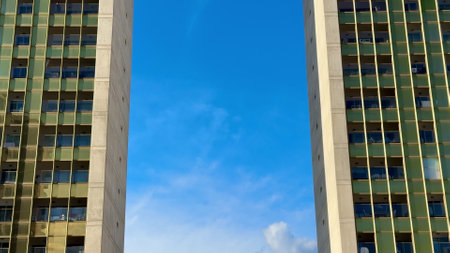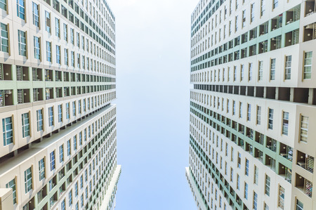 image of condo building and blue sky background.