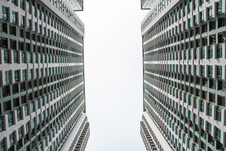 two multi-storey residential buildings, bottom view