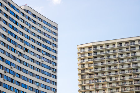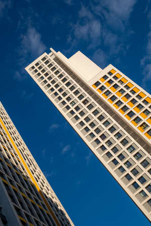 Typical modern multi storey residential skyscraper building on sky background