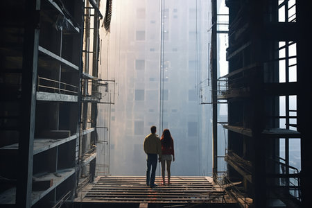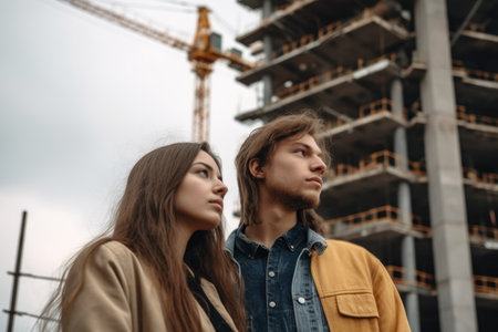 cropped shot of a young couple looking at a building under construction, created with generative ai