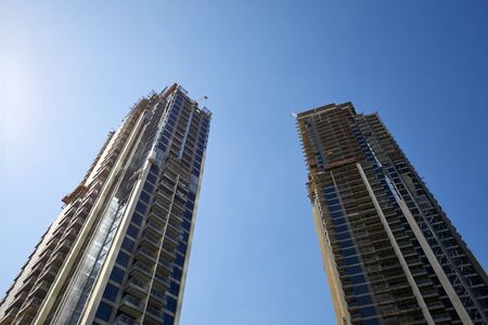 High-rise buildings in the blue sky, closeup of photo