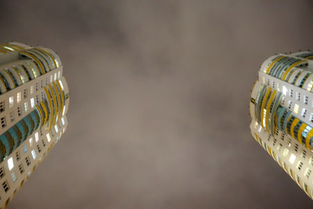 Modern high residential building at night. Architectural and urban background