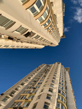 Modern high-rise residential buildings. Bottom view.
