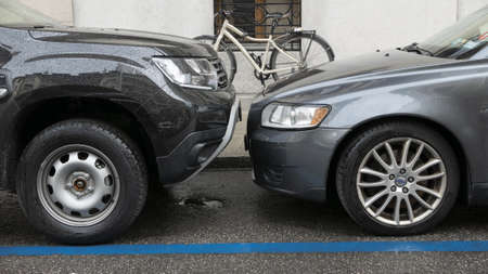 Close-up of a bicycle accident on the city street.broken bike on the roadway.bicycle wheel after an accident on the road. life insurance and protection concept.Generative AI