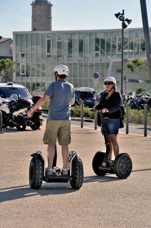 Two hoverboard on the cobblestones on a sunny summer day. Hire of hoverboards