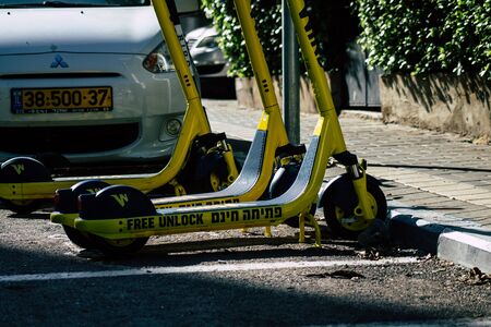 Limassol Cyprus March 20, 2020 View of electric scooters parked in the streets of Limassol in the afternoon