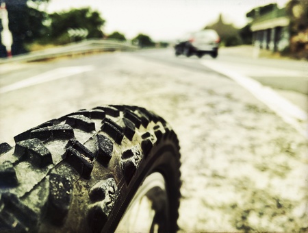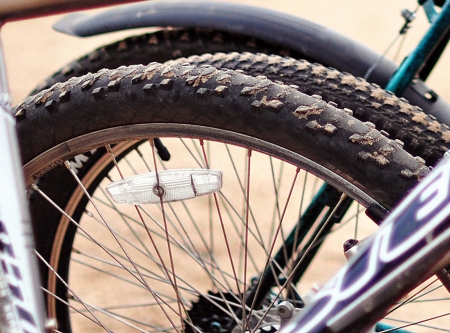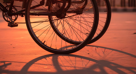 Cycle wheels with shadows. Sunset casting an orange glow and warm colors.