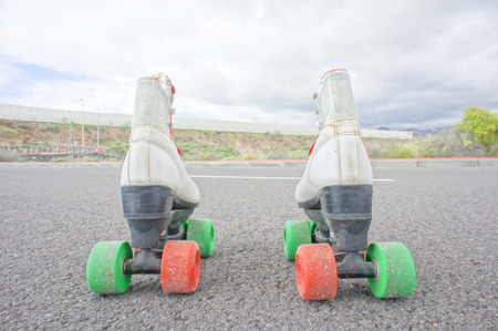 Hdr Picture of Old Vintage White Skate Boot on the Asphalt Sterret