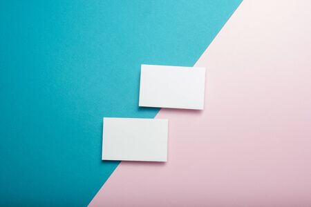Business cards blank. Mockup on color background. Flat Lay. copy space for text