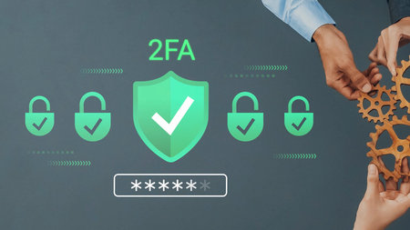 Two-Factor Authentication Concept with Hands Holding Gears and Security Icons Representing Digital Protection and Safe Online Practices.