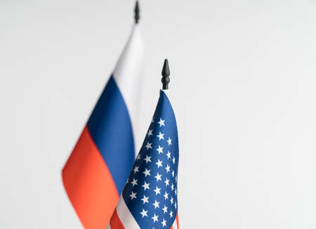 The flags of the USA and Russia on a white background isolated. The concept of policy