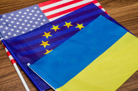 flags of the USA, Europe and Ukraine