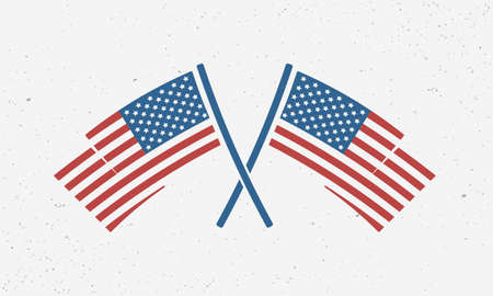 United States of America flags. Poster of USA with crossed flags. American background. USA patriotic sign. American banner template. Vector illustration.