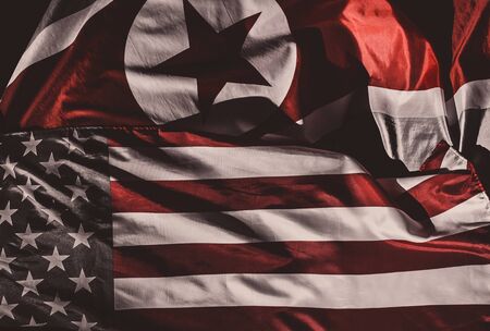 Closeup shot of Usa and Afghanistan waved flags