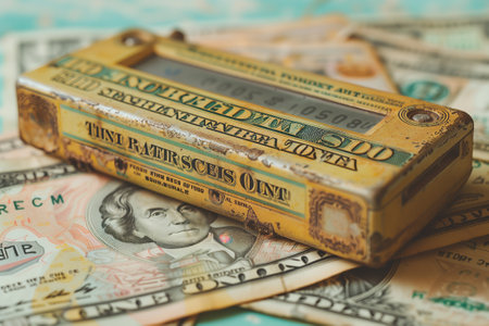 A stack of banknotes with a box on top, handling cash and currency