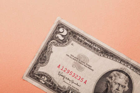 old crumpled banknotes denominated two U.S. dollars. High quality photo