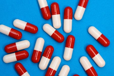 red pills on a blue background