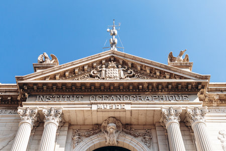 Monaco, Monaco - June 28, 2025: Facade of the Oceanographic Museum with ornate architecture and sculptures