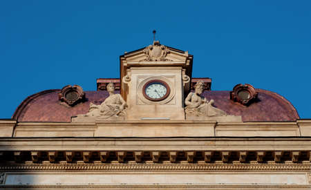 The tympanum over the House of Estates with a group of symbolic bronze figures by sculptor Emil Wikstrom (1903) depicting Tsar Alexander I at the Diet of Porvoo.