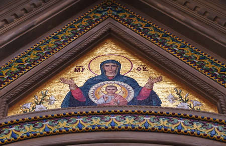 Mosaic on the entrance door of the Russian Orthodox Church of the Nativity in Florence, Italy