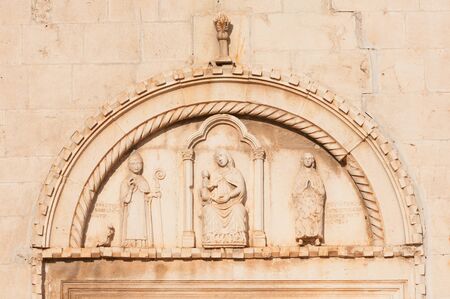 Carved portal of medieval St. Dominic monastery in Trogir, Croatia