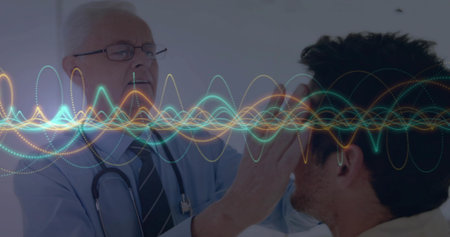 Doctor examining the ear of a male patient with an otoscope during a medical consultation in a clinic setting, focusing on healthcare