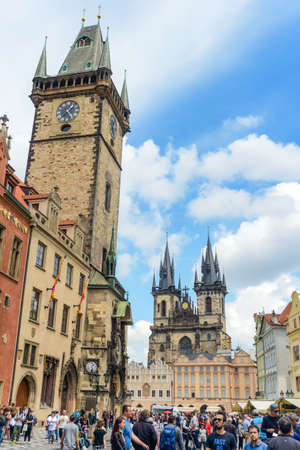 Czech Republic, Praga -28 Jule 2016:Tourists in Old Town Square, Prague, Czech Republic with the Church of Our Lady before Tyn in the background