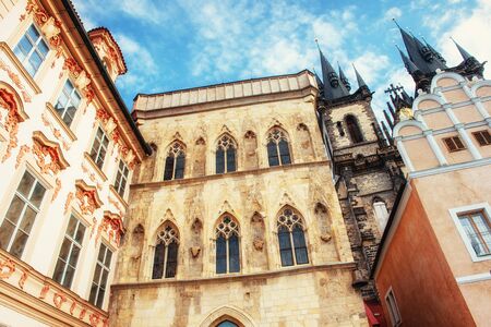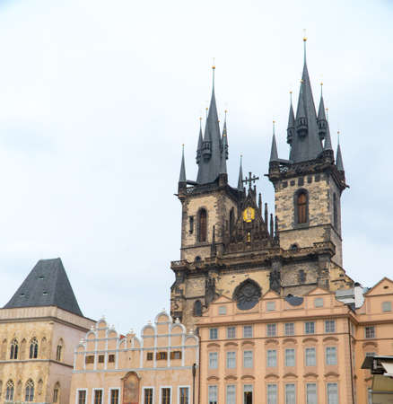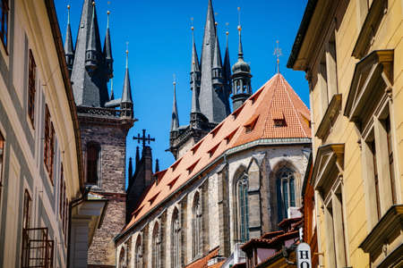 Old Town square with Tyn Church. View of Prague. Detail of the Prague in the Old Town. Czech Republic.
