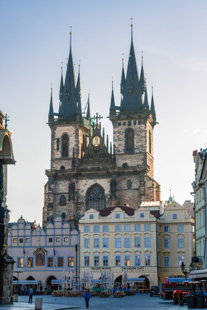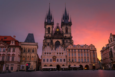 Prague, Czech Republic. Old Town Square and Church of Our Lady before Tyn at sunrise.