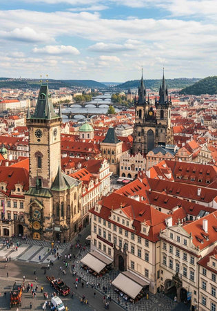 Prague, Czech Republic. Aerial view of the Old Town Square.