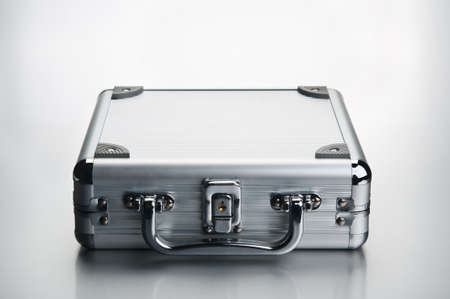 Metal box. Iron case. The aluminum iron suitcase with locks.