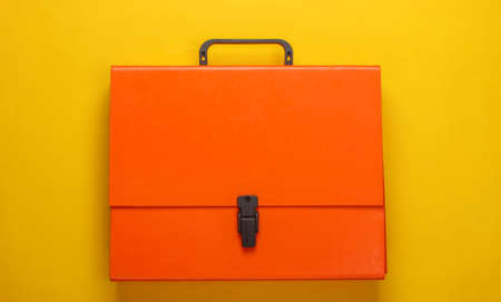 Bright Orange Toolbox on Yellow Background. Essential Tool Storage for DIY Projects and Repairs.