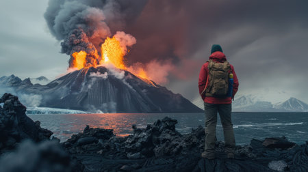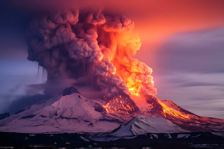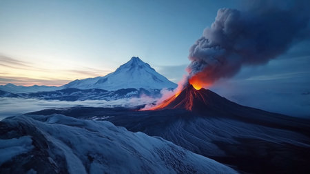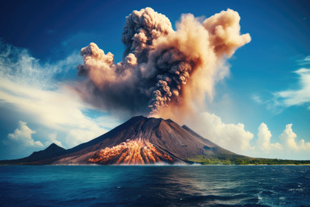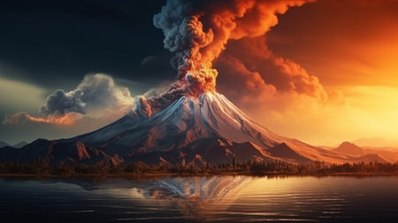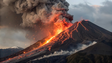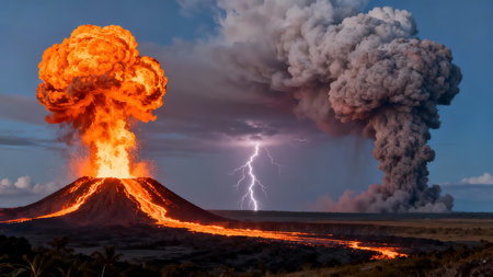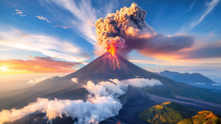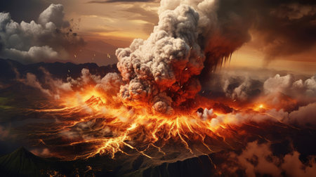 Dramatic volcanic eruption creating ash clouds in a breathtaking landscape view