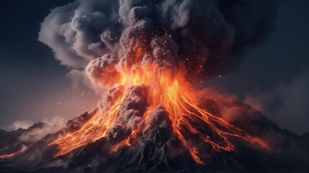 Volcanic explosion that creates a huge cloud of ash and smoke. generative ai