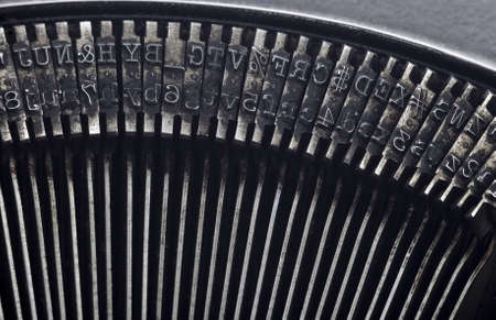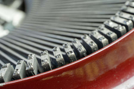 Antique Typewriter keys closeup photo - Vintage old Typewriter Machine detail
