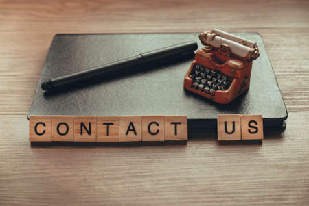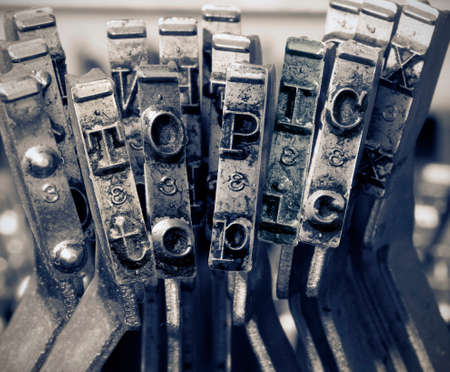 Angled text typed on paper using an antique typewriter. Vintage lettering, retro style, grunge, business or marketing concept.